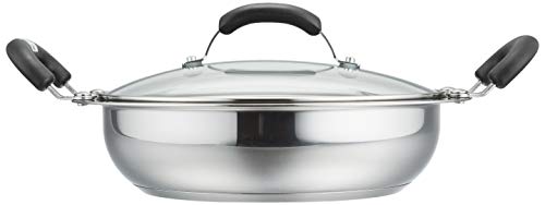 鍋料理はもちろん、焼き調理や量が多めの炒め物などにもオススメ、ステンレス+フッ素樹脂加工で調理中はこびりつきにくく、お手入れもラク、見た目もスタイリッシュでオシャレなステンレス製両手鍋の逸品です!