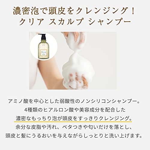 シャンプーは、アミノ酸系洗浄成分などを採用し、濃密泡で洗いながら、植物由来のエキスやヒアルロン酸などの豊富な美容成分による頭皮や髪の美容効果も同時に期待できる内容。
